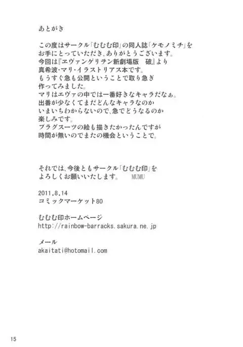 (C80) [Mumumu Jirushi (MUMU)] Kemonomichi (Neon Genesis Evangelion)