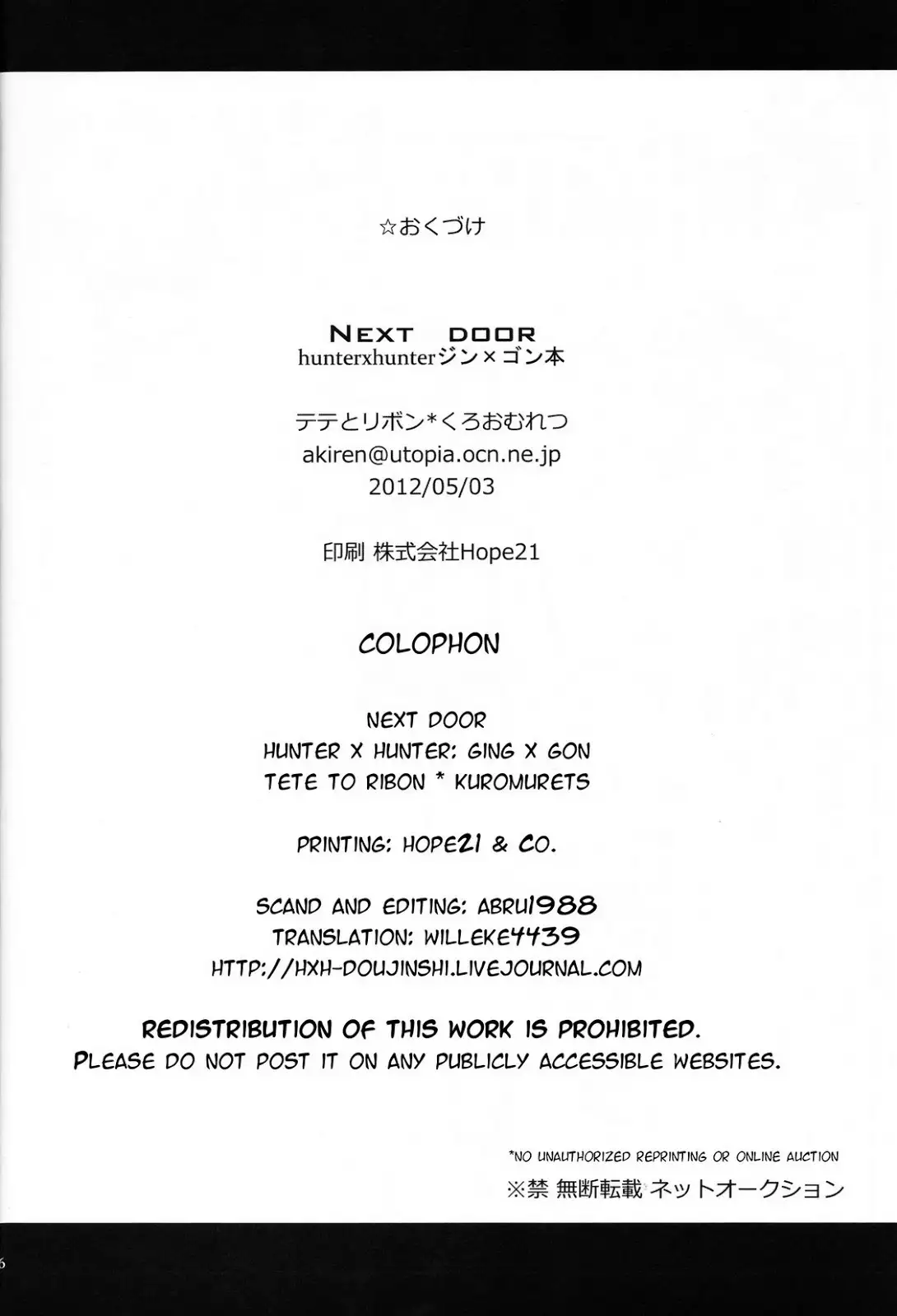 [Tete to Ribon (Kuromurets)] Next door (Hunter x Hunter) [English]