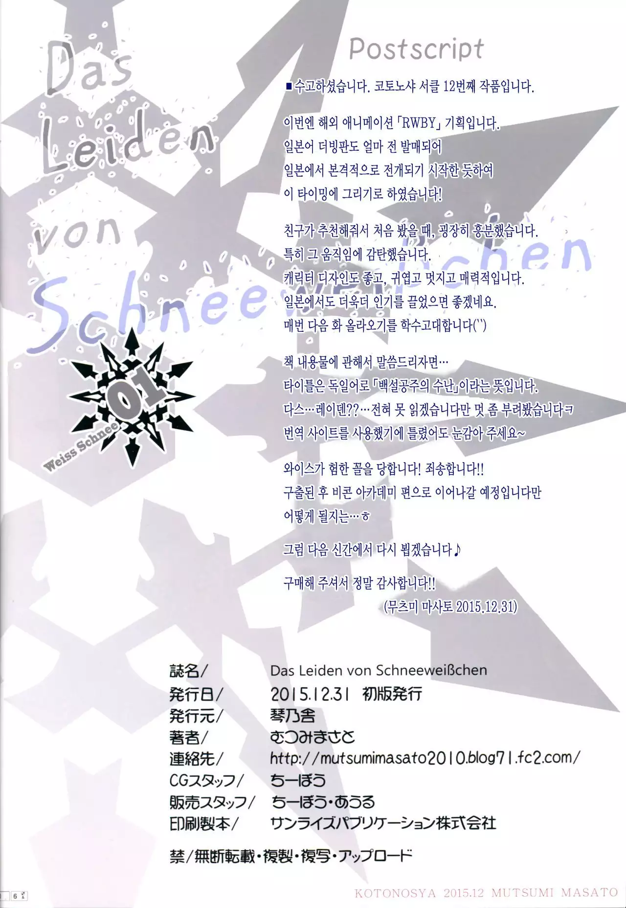 (C89) [Kotonosha (Mutsumi Masato)] Das Leiden von SchneeWeisschen (RWBY)